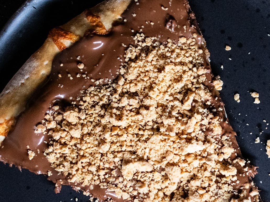 Deliciosa Pizza de chocolate, Ganache e paçoquita
